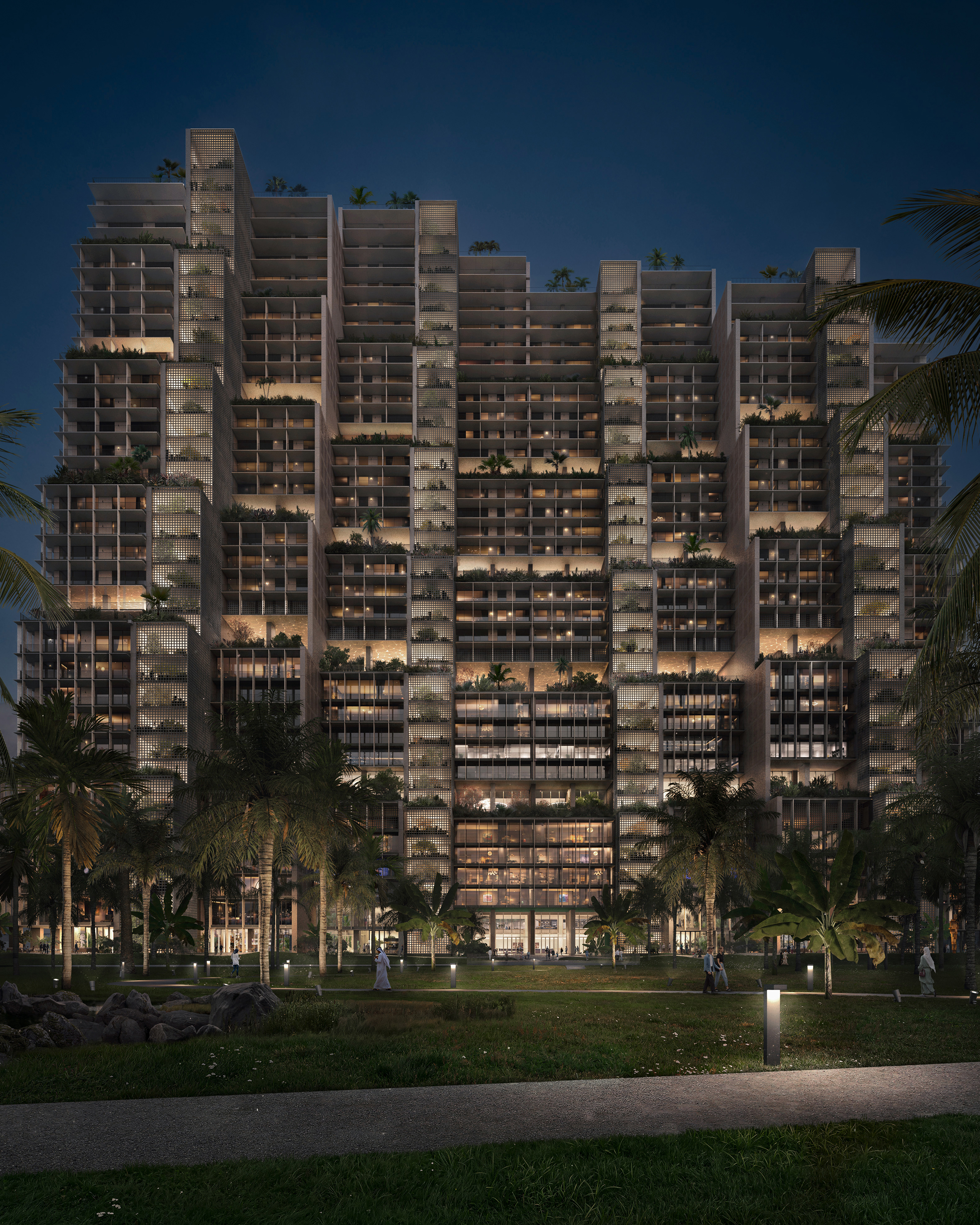 Upon arriving, residents and guests alike are greeted by an expansive plaza framed by bold, sculptural architecture, the work of British maestro Sir David Chipperfield, whose work includes Berlin’s Neues Museum and the Turner Contemporary in the UK. The combination of a modern façade amid dense green landscaping, all set on the edge of Dubai’s largest green park, immediately establishes the mood of nature and tranquillity, a welcome foil to the wider urban city.