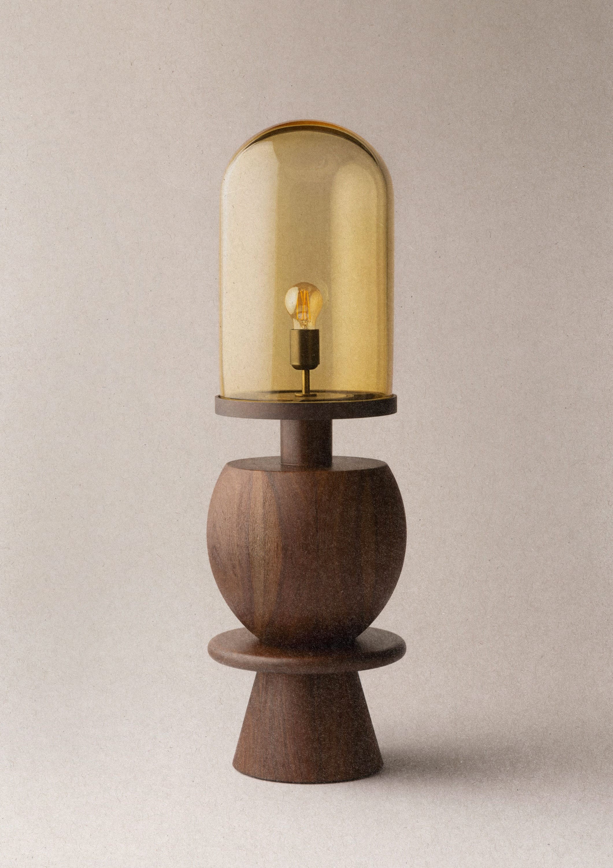 - Chios Lamp, scratched brown tinted cedar wood base and paper lampshade