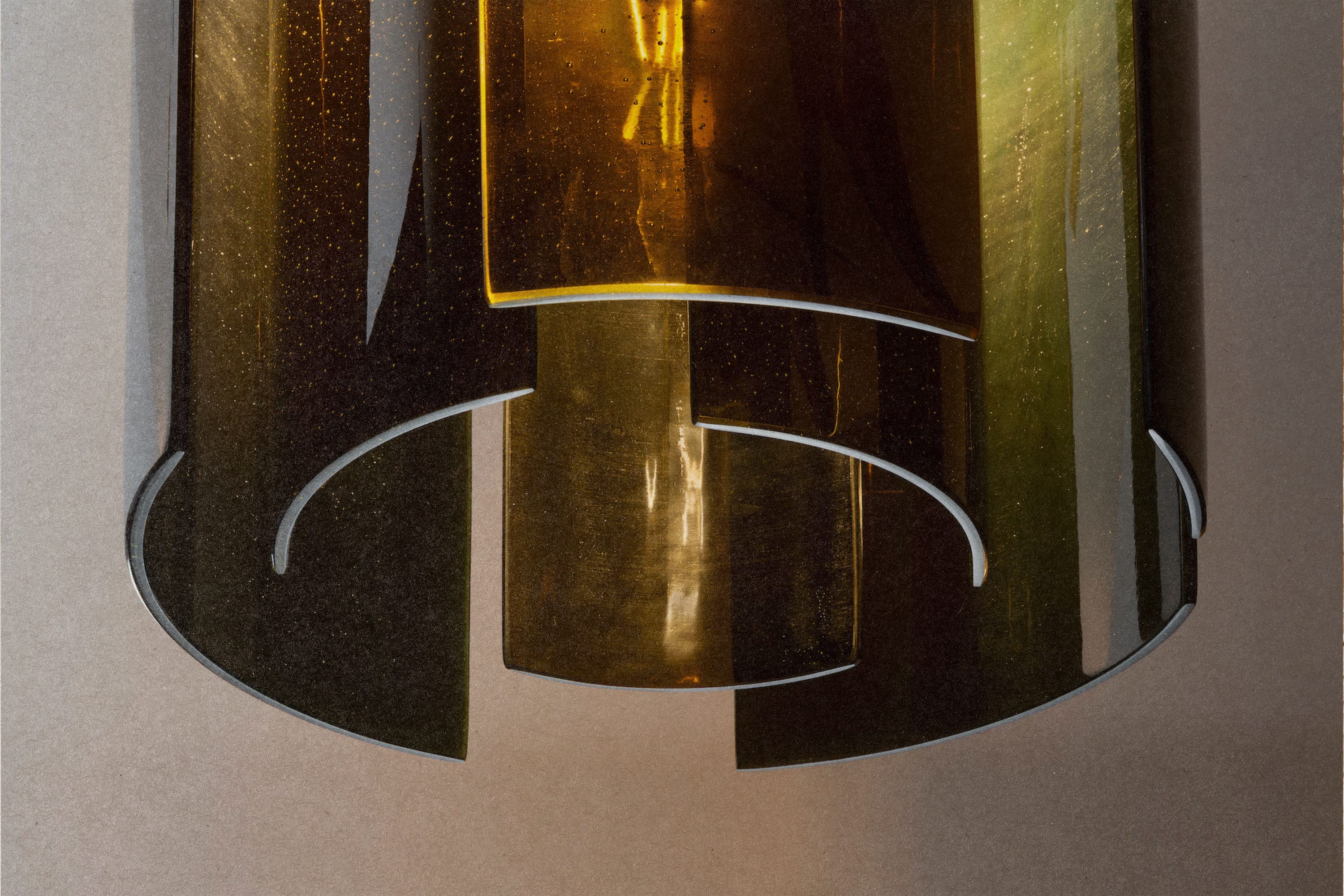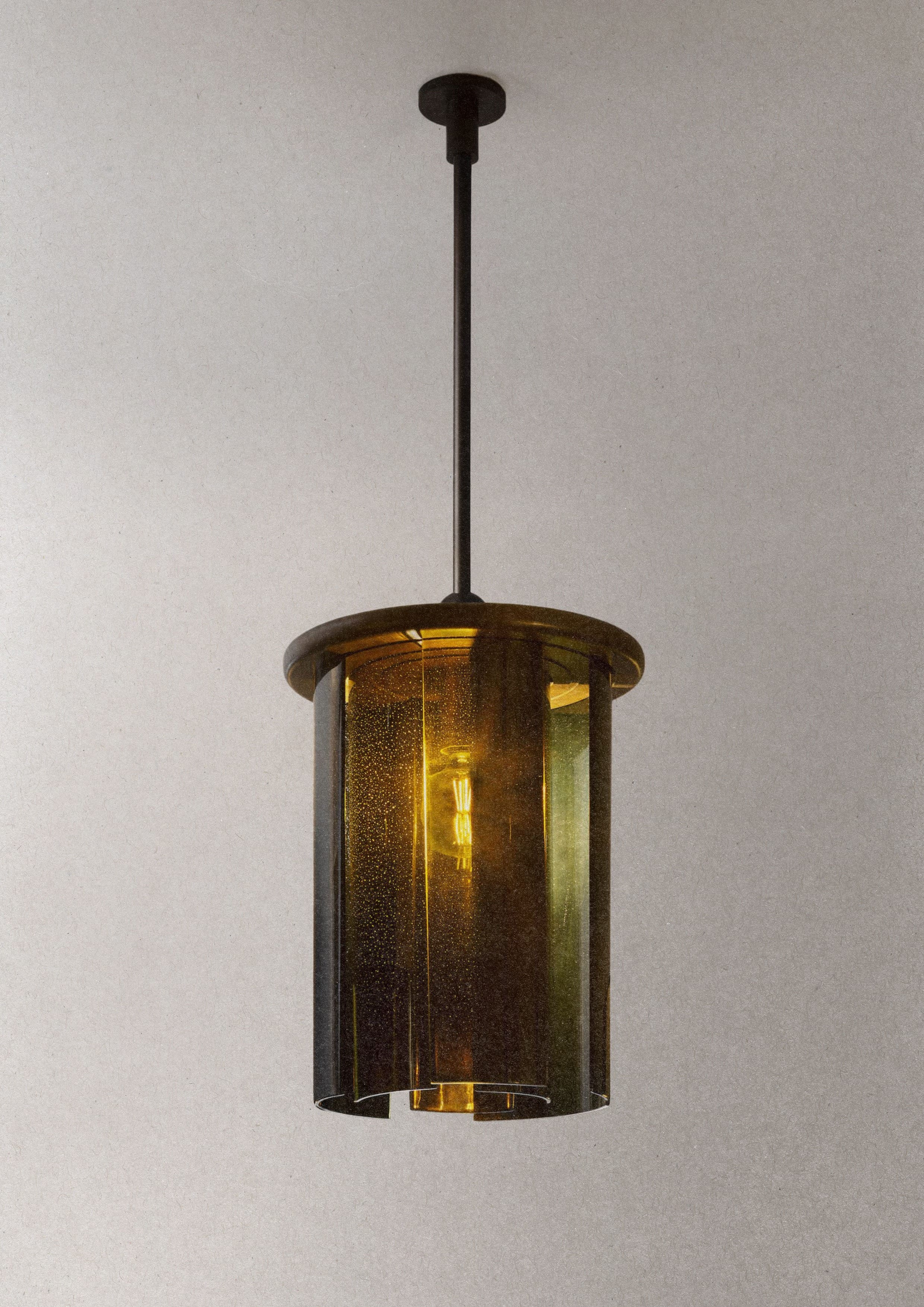 - Omaggio Lantern, coloured bubbled glass, patinated bronze and brass